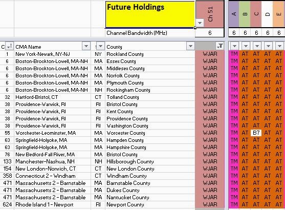 Yesterday, the FCC accepted a Channel 51 transition in Providence, RI. The movement of this TV station from Channel 51 to Channel 50, will eliminate the adjacent channel interference risk to T-Mobile's 700MHz A-Block spectrum in Boston, MA. It eliminates interference concerns across 22 counties with a total population of 8,228,649 Below is a listing of the currently filed Channel 51 transitions. Each of the Daily Digest dates is linked to the filed information.