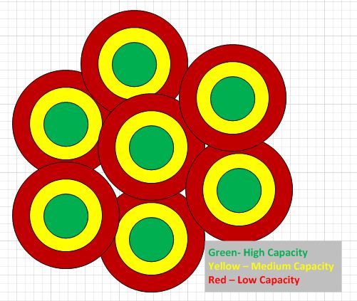 How does this affect VoIP and the launch of VoLTE? With the diagram above I have indicated the areas of each cell site that will have high, medium, and low capacity based upon their voice network design. These are the areas that VoIP voice quality will suffer due to lack of coverage or capacity. With each carrier only offering LTE on one channel, the option to add additional spectrum to solve the capacity issue is not available. Carriers are pursuing small cell solutions to meet this capacity need but it will require extensive time to mature the networks to support VoLTE and VoIP on a standalone basis.