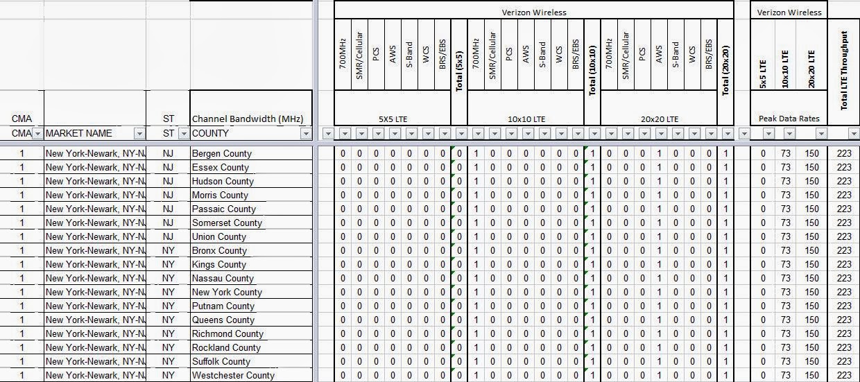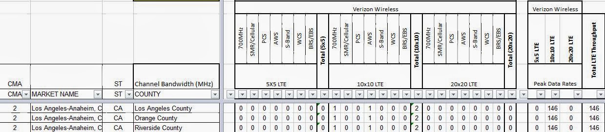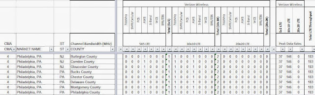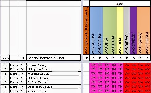 With the news that Verizon is beginning to turn up some of their AWS spectrum with LTE, I will examine the spectrum available for those LTE deployments in the Top 5 CMAs with the Spectrum Ownership Analysis Tool.