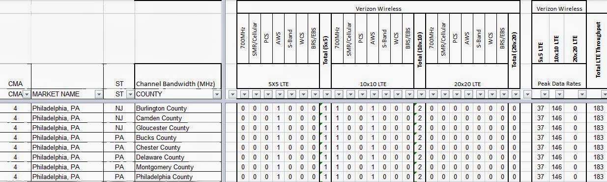 In Philadelphia, the largest channel Verizon can form is a 10x10 channel. When AT&T gets control of the Leap spectrum assets, I would expect a three-way spectrum trade to allow Verizon, T-Mobile, and AT&T to rationalize their AWS spectrum positions.