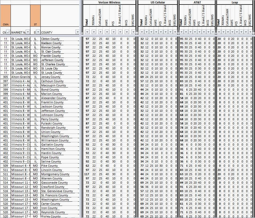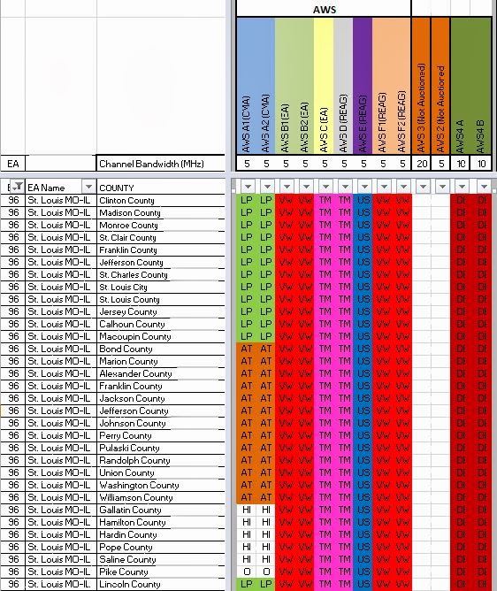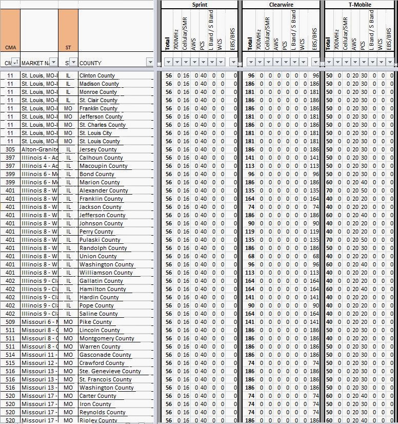 To look at the competitive picture for spectrum in the St Louis market (EA-96) we can look at the